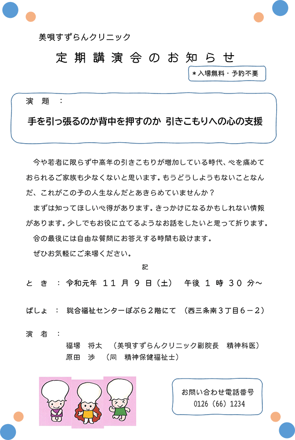 美唄すずらんクリニック 第7回定期講演会のお知らせ(参加無料)