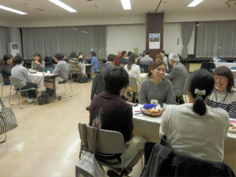 ワールドカフェ方式とは、与えられたテーマについて各テーブルで数人がまず議論し、次にテーブルホスト以外は他のテーブルへ移動し、そこのホストから前の議論のサマリーを聞いてからさらに議論を深め、これを何回か繰り返した後に、各テーブルホストがまとめの報告を全員にする方法です。少人数で自由に発言をしつつ、多くの人の意見を聞くこともできる方法として、日本でも活用される場が増えてきているそうです。