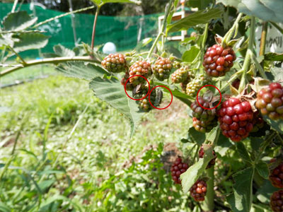 これから収穫時期を迎える実も沢山です。どれだけ頻繁に来ればよいのでしょうか…。そして、カメムシも多すぎです。気持ち悪っ!!